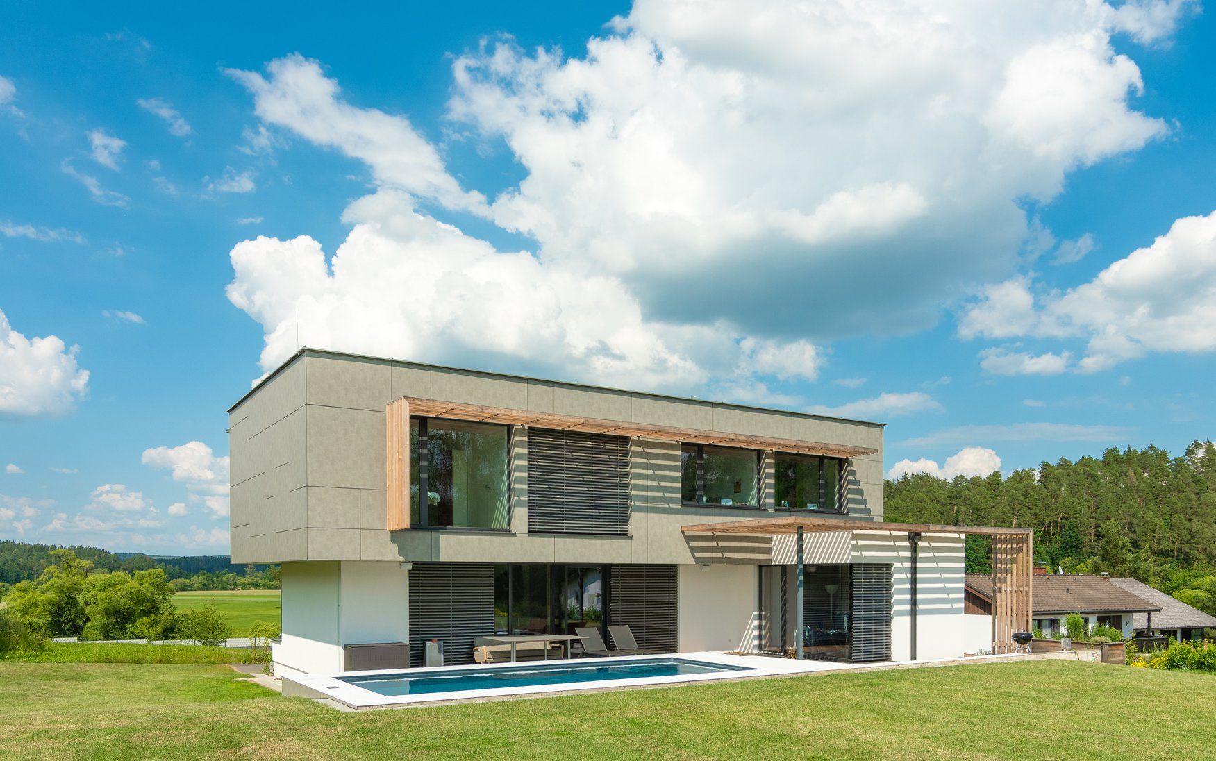 Bauweise: MassivholzbauHeizsystem: Luft-Wasser-Wärmepumpe